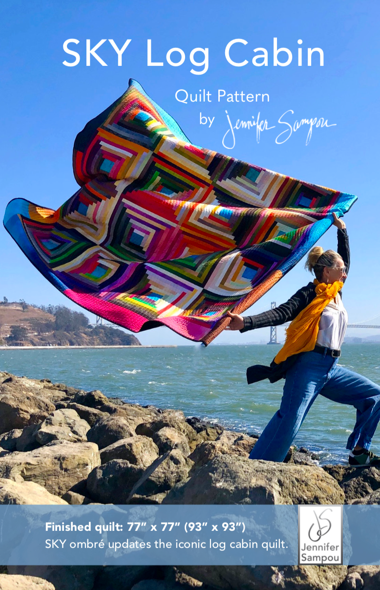 SKY ombrés updates the iconic log cabin quilt to be fresh yet familiar. Pieced with SKY Ombré and Chalk and Charcoal fabrics, you can make this fabulous quilt! Instructions are clear and precise, yielding wonderful results with an added border that creates glow and interest.